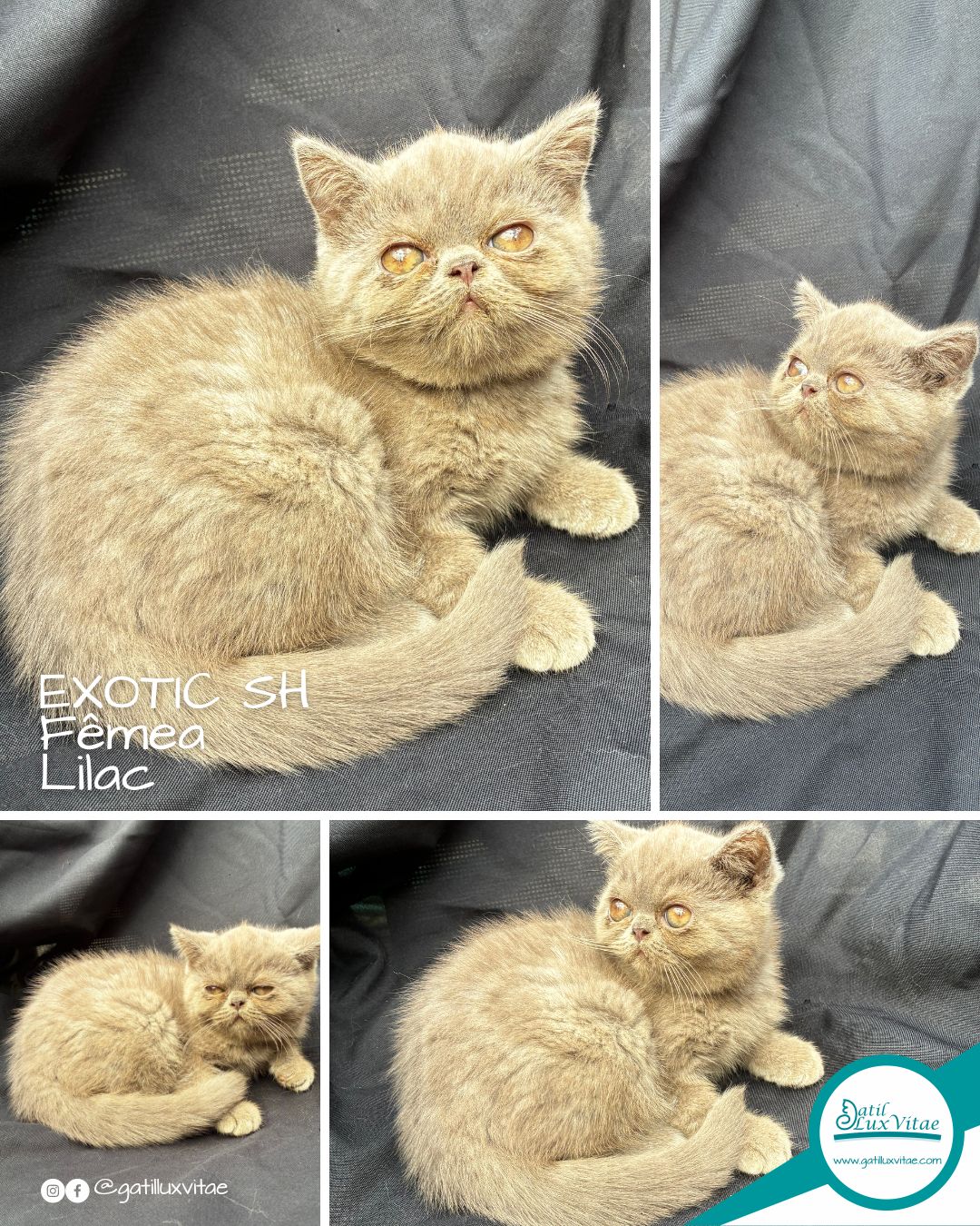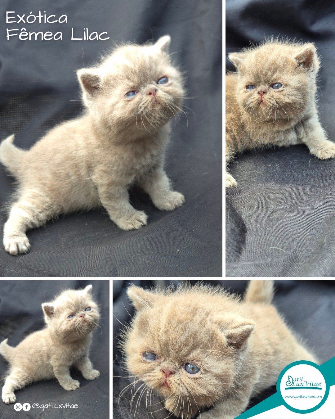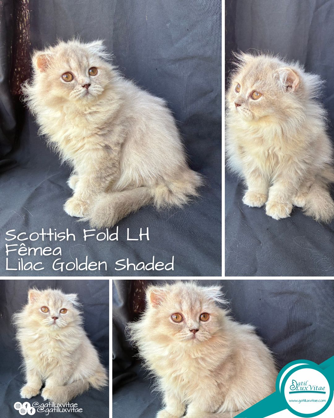 O gatil trabalha com gatos Persa, gatos Himalaias, gatos Exóticos, gatos Scottish Fold e gatos British Shorthair.