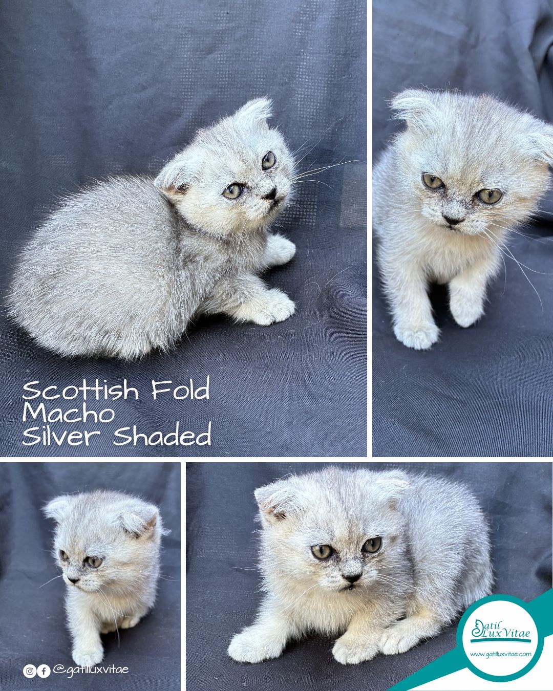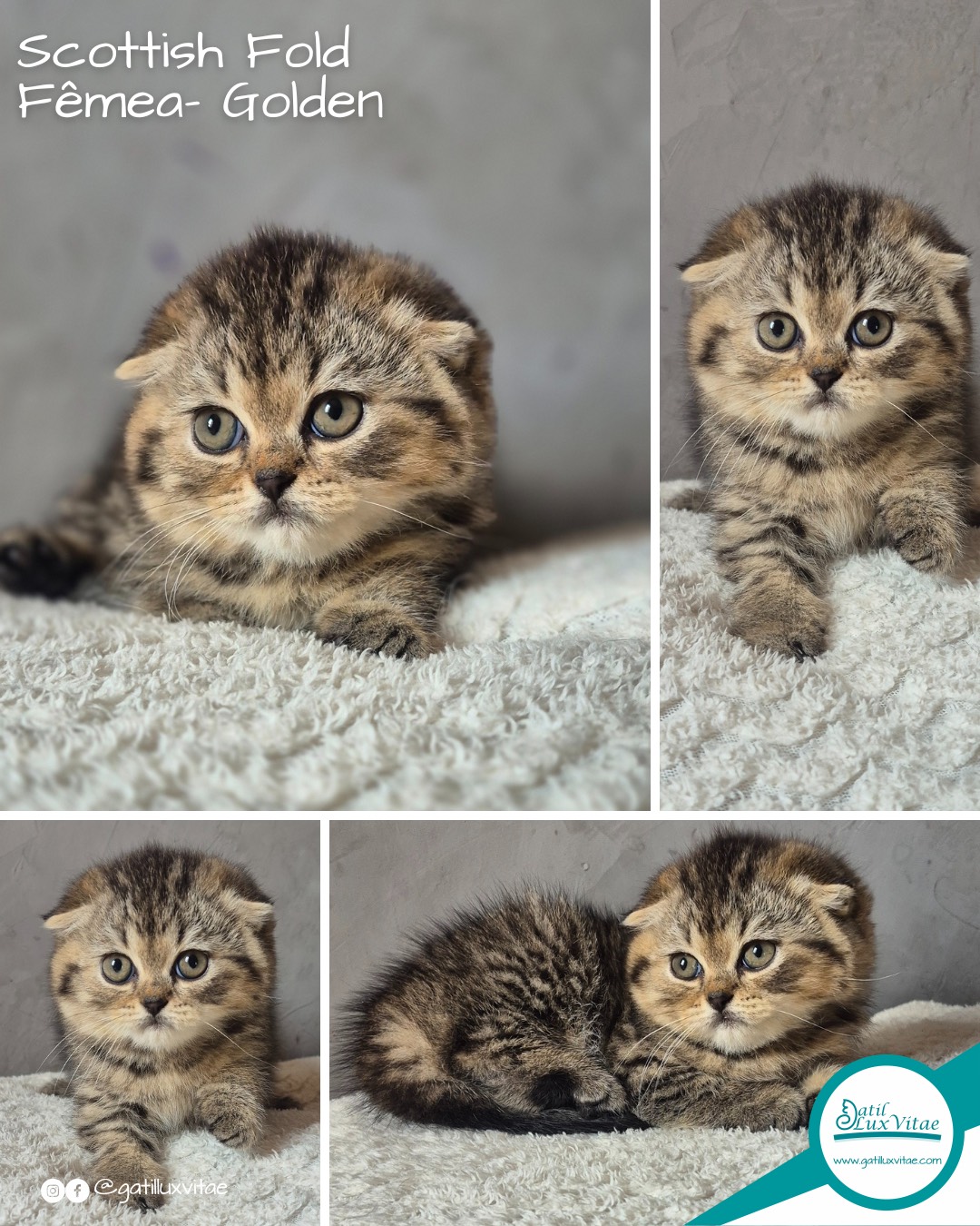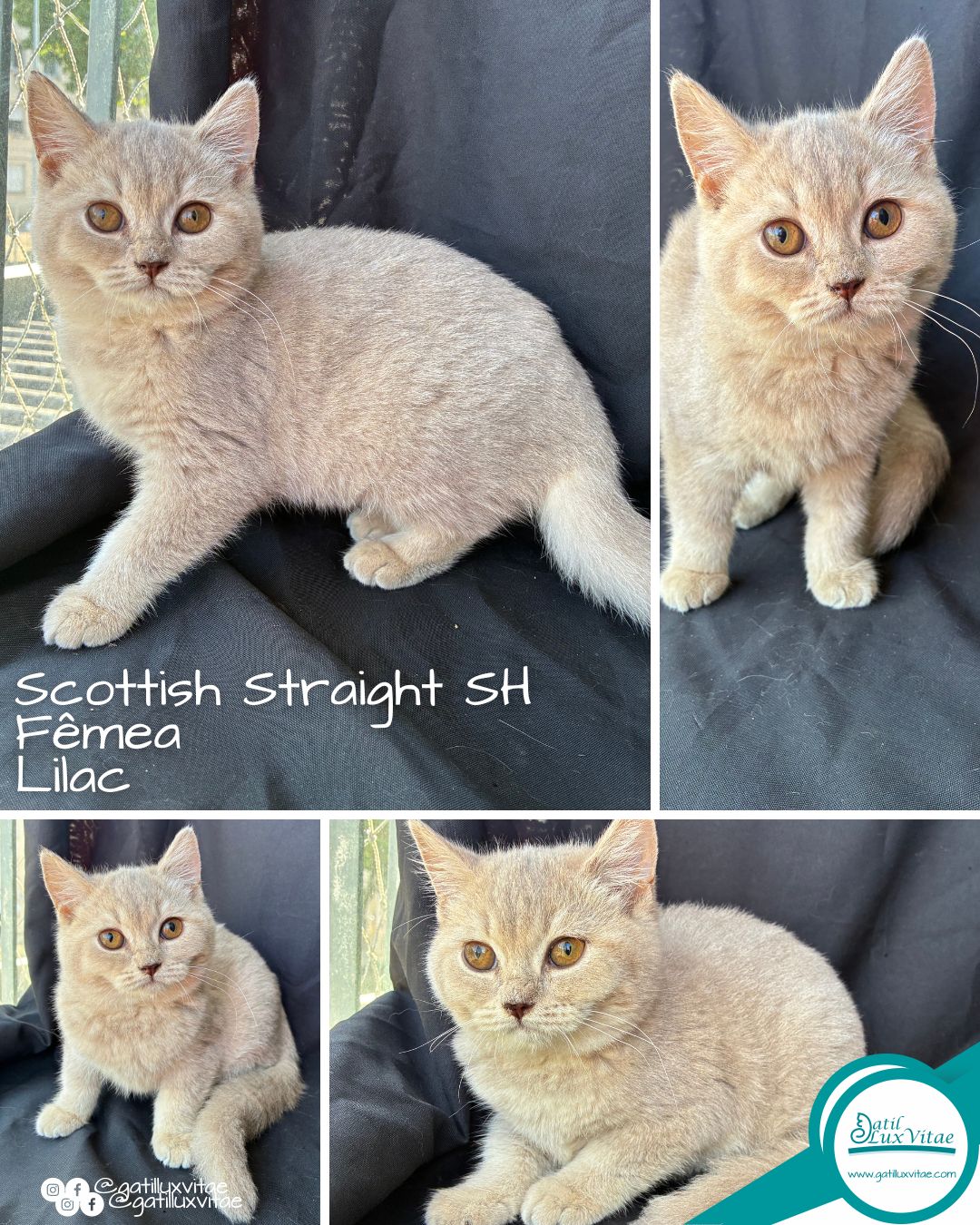 O gatil trabalha com gatos Persa, gatos Himalaias, gatos Exóticos, gatos Scottish Fold e gatos British Shorthair.